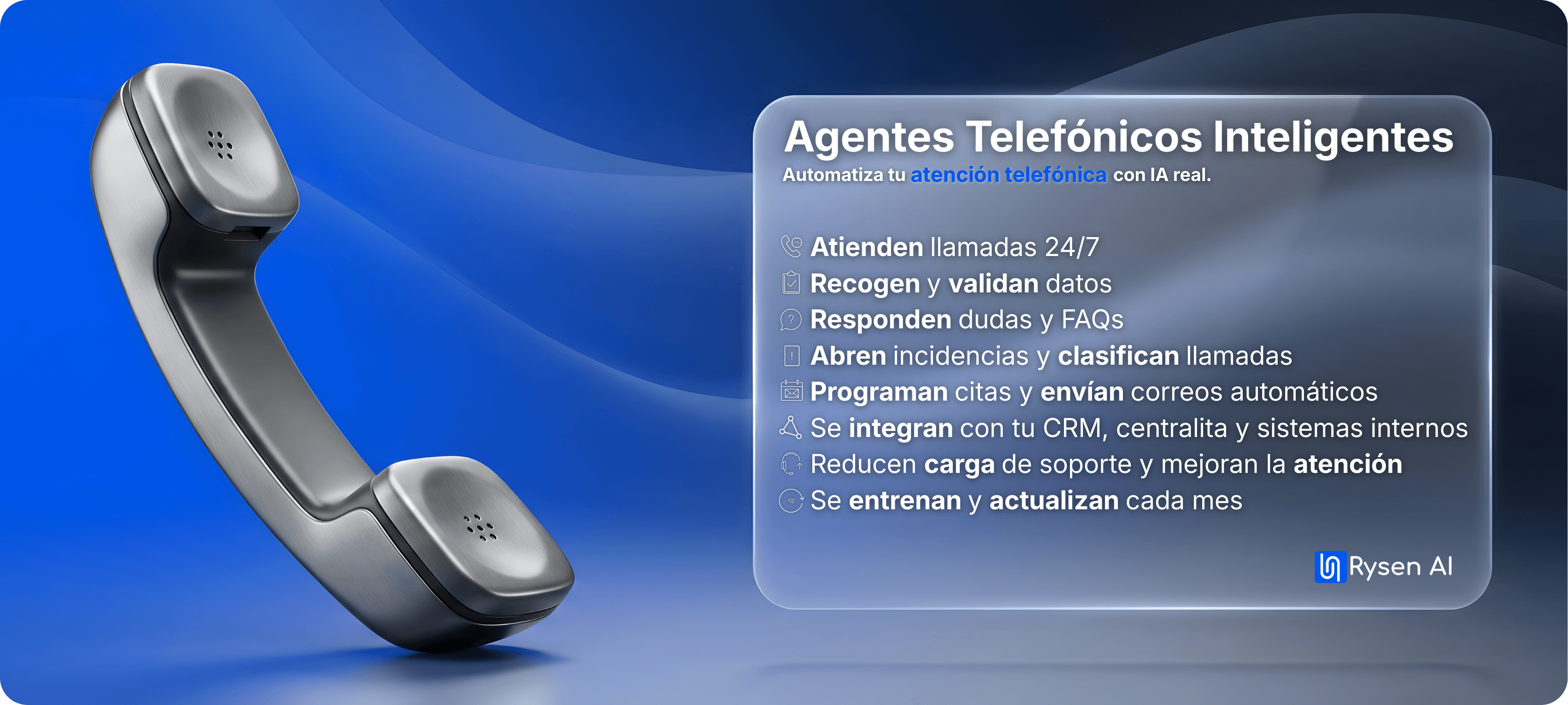 Nuestros agentes telefónicos inteligentes son sistemas de atención diseñados para operar en entornos reales de empresa.