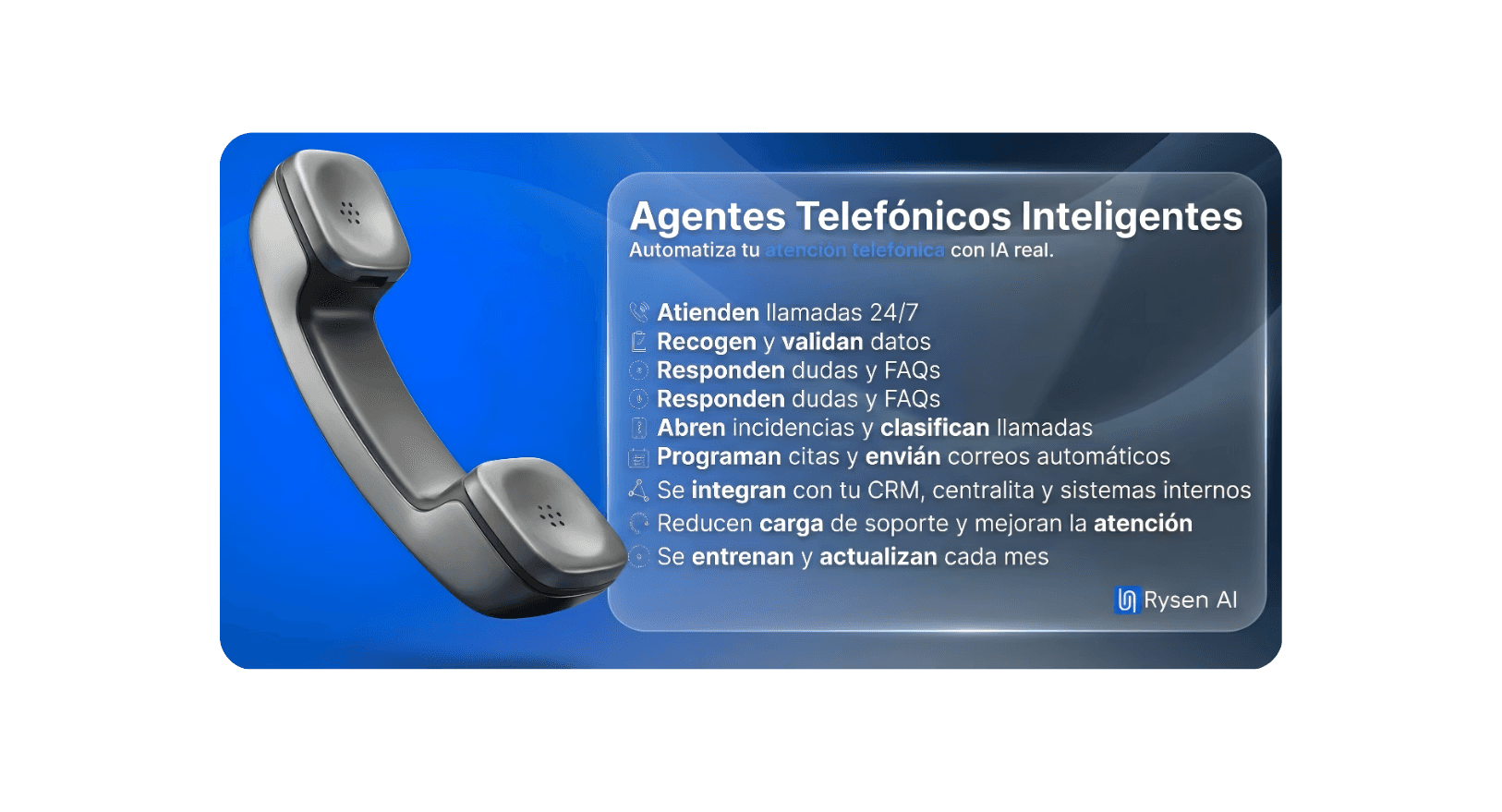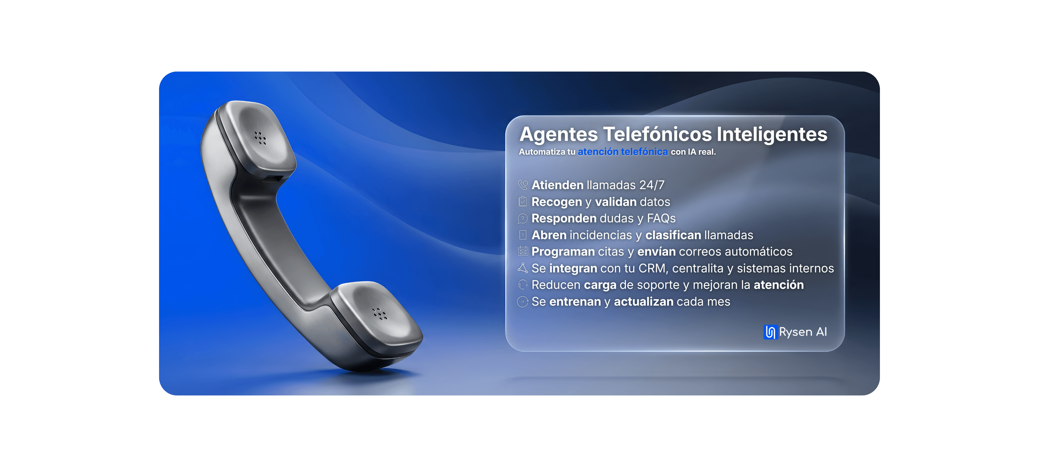 Desde agentes de voz hasta automatizaciones completas, Rysen AI te ayuda a reducir costes, mejorar tu soporte y liberar tiempo en tu equipo.